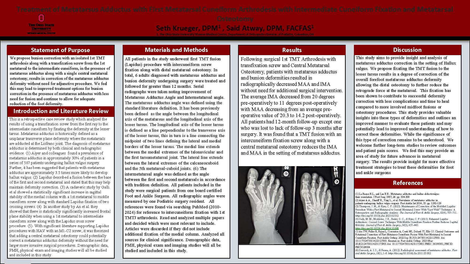 The Great Mimicker an Interesting Case of Pseudogout in the Ankle A Case Report | Tibial Nerve External Neurolysis with Nerve Wrap and Flatfoot Correction for Revision Tarsal Tunnel Surgery | Treatment of Metatarsus Adductus with First Metatarsal Cuneiform Arthrodesis With Intermediate Cuneiform Fixation and Metatarsal Osteotomy |